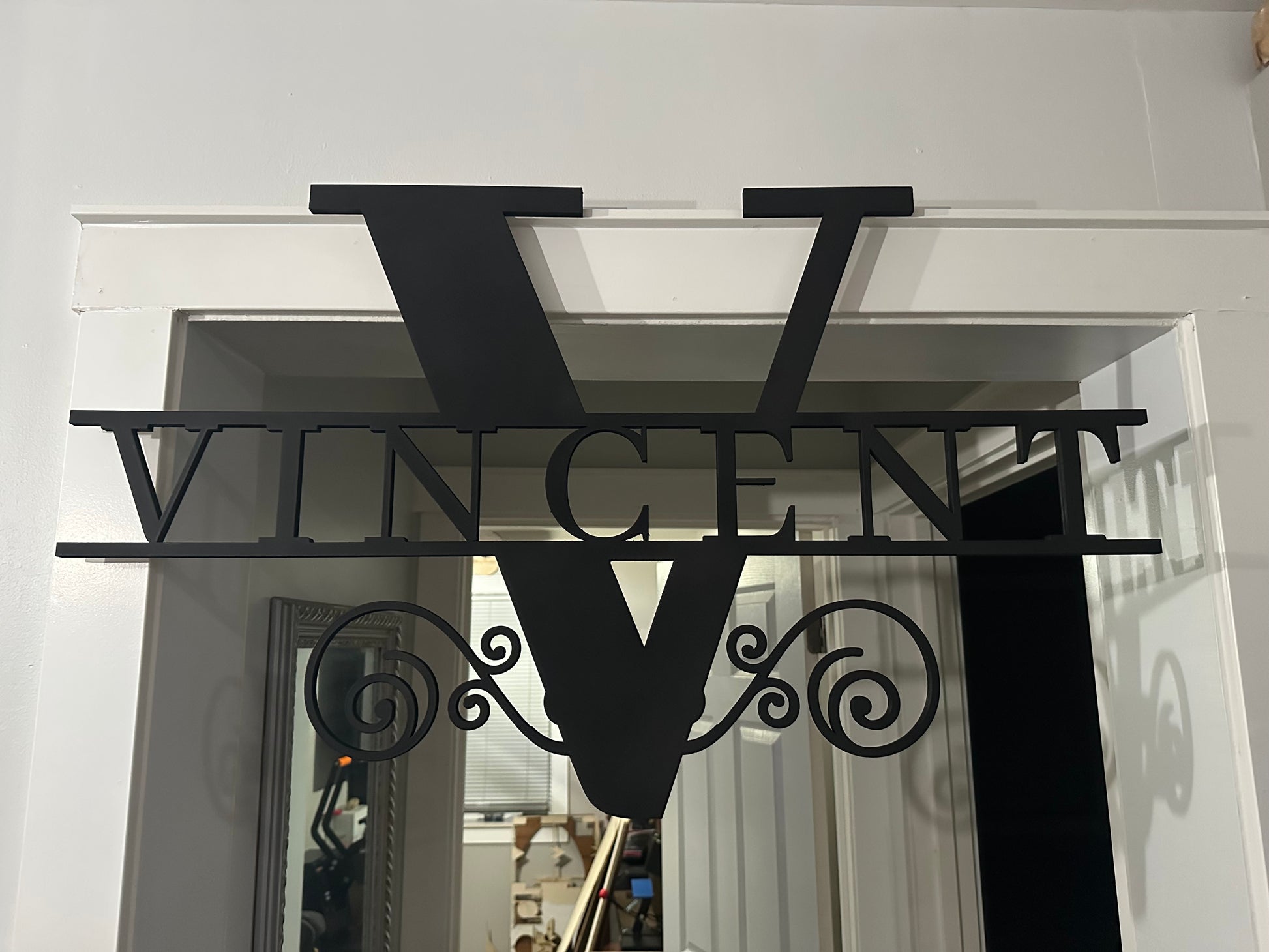 Custom designed wood monogram signs. Choice of painted black or white. Approximately 24" x 1/2" thick. Wall hangers included & installed. Please email us the name for the Monogram sign at time of purchase.